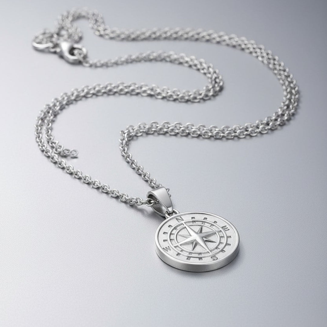 A vida é feita de escolhas. E cada escolha define o rumo da sua jornada. O Colar Masculino Bússola North Horizon é um talismã de direção e propósito, carregando o poder simbólico da bússola — Para homens que sabem onde querem chegar.